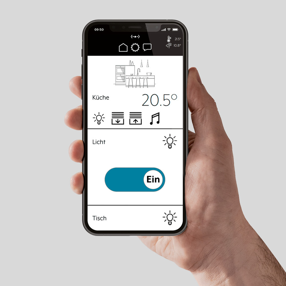 - Fernzugriff (SP8-Remote): Mit dem Fernzugriff können die Nutzerinnen und Nutzer ihre Heizung, Beleuchtung und Beschattung über KNX jederzeit auch von unterwegs individuell steuern. Der Zugriff erfolgt sicher über die Cloud.